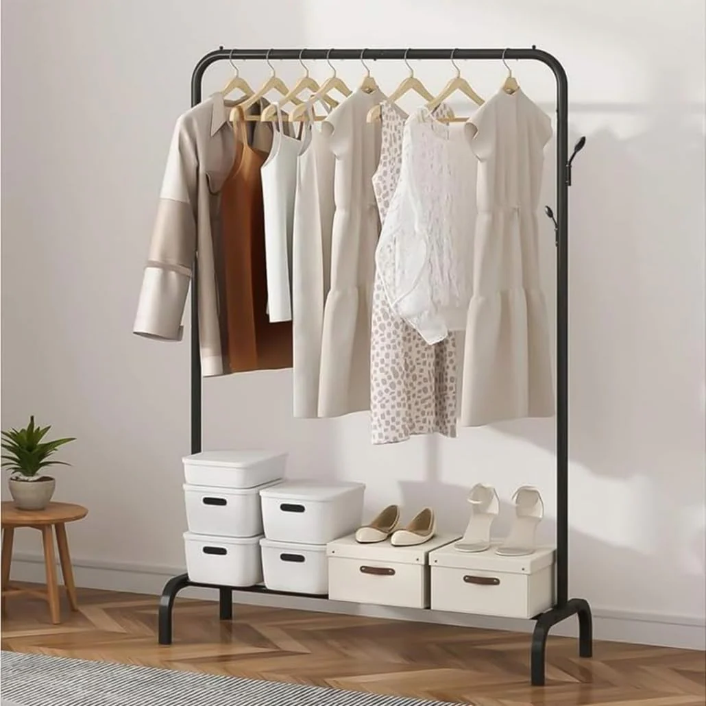 Lukzer Freestanding Metal Cloth Stand with Storage Shelf (MGS-001/Black)