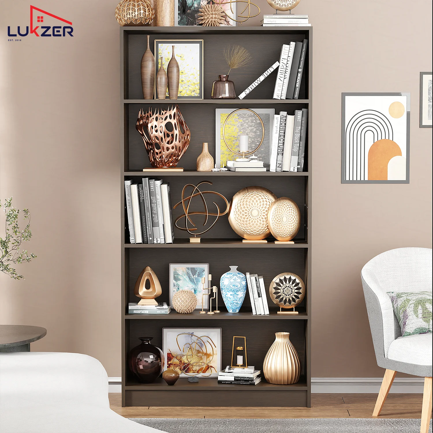Lukzer presents the MR-032 6-Tier Engineered Wood Bookcase in a wooden finish, a modern storage solution designed for smart, stylish, and organized living. Crafted with high-quality engineered wood, this multipurpose open bookshelf combines durability with a contemporary aesthetic, making it an ideal addition to your living room, bedroom, office, or study area. With six spacious shelves, the Lukzer bookcase provides ample storage for books, novels, files, magazines, toys, plants, and home décor items. The open display design allows for easy access, better visibility, and an airy look that blends seamlessly with modern interiors. Its sleek Wenge color finish adds a rich and elegant touch, enhancing the sophistication of your home or workspace. The DIY (Do-It-Yourself) assembly feature ensures flexibility—you can install it yourself with the provided hardware and installation guide or easily get it assembled by a carpenter. Whether you want to use it as a book rack, display cabinet, or storage organizer, this versatile shelf adapts effortlessly to multiple needs. Engineered for long-lasting durability, the smooth surface resists scratches and is easy to clean with a damp cloth, ensuring minimal maintenance. The sturdy build keeps the bookshelf stable, while its compact footprint makes it suitable even for smaller rooms and apartments. Upgrade your storage game with the Lukzer 6-Tier Bookcase MR-032, where functionality meets elegance. Perfect for those who value organization without compromising on style, this open book rack is more than just storage—it’s a statement piece for modern homes.