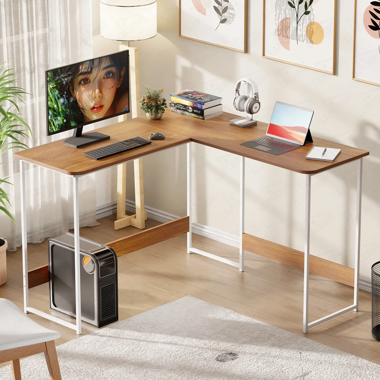 Upgrade your workspace with the modern, durable, and highly functional L-Shaped Corner Desk by Lukzer, thoughtfully designed to enhance productivity, comfort, and style for both home and office environments. Featuring a spacious 110 cm × 110 cm desktop, this workstation provides ample room for dual-monitor setups, laptops, desk organizers, notebooks, décor elements, and office accessories—helping you maintain a clean, clutter-free, and focused workspace. The smooth engineered wood top is supported by a strong metal frame that adds stability during daily use, making the desk suitable for long work sessions, study hours, gaming, content creation, editing, and professional tasks. With a comfortable height of 75 cm (29.5 inches), it provides ample legroom and an ergonomic working position. Its intelligent L-shaped corner-saving design makes it ideal for small spaces, giving you more functional area without occupying unnecessary room space. Perfect for bedrooms, home offices, small apartments, and professional setups, this desk upgrades your environment instantly with clean lines and a modern look. With simple DIY assembly and multiple color combinations to match your interior style Black Frame & Oak Brown Top, Black Frame & Black Top, White Frame & Oak Brown Top, White Frame & White Top. This desk brings practicality and elegance together for a smart, organized, and productive setup.